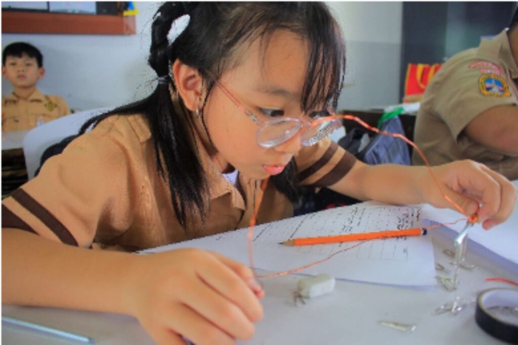 Sebelum siswa-siswi melakukan praktikum individu, guru mempraktikkannya terlebih dahulu di depan kelas. Setelah itu, siswa-siswi diminta untuk membuat elektromagnet secara individu. Antusias siswa-siswi sangat luar biasa, mereka terus mencoba sampai benda magnetis di sekitar dapat terangkat oleh magnet buatan mereka. Siswa-siswi membuat elektromagnet dengan baterai sebagai sumber listrik dan paper clip sebagai benda magnetis.