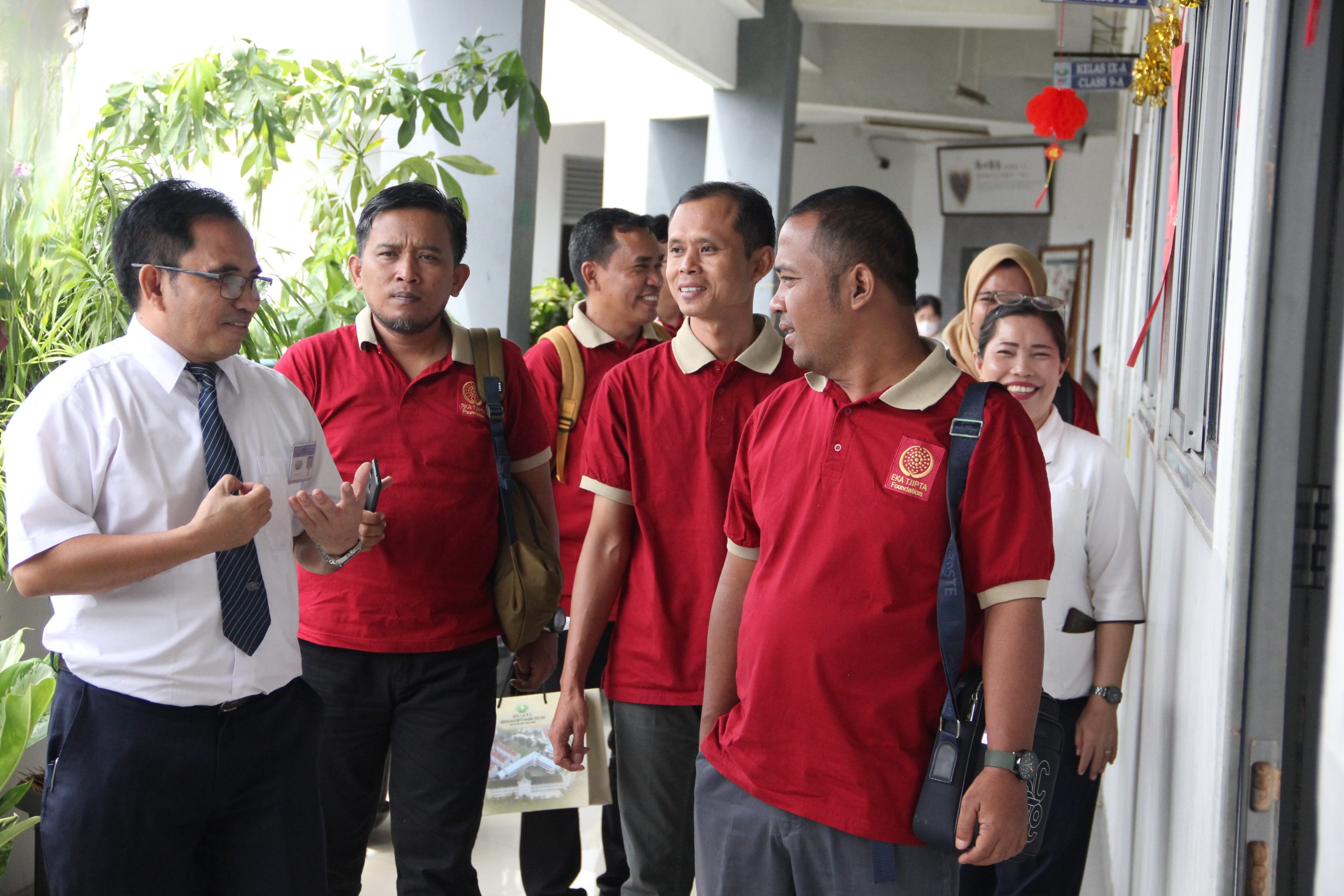 Pak Edi Supeno memberikan penjelasan selama tour Sekolah Cinta Kasih Tzu Chi kepada para perwakilan Yayasan Eka Tjipta Foundation.