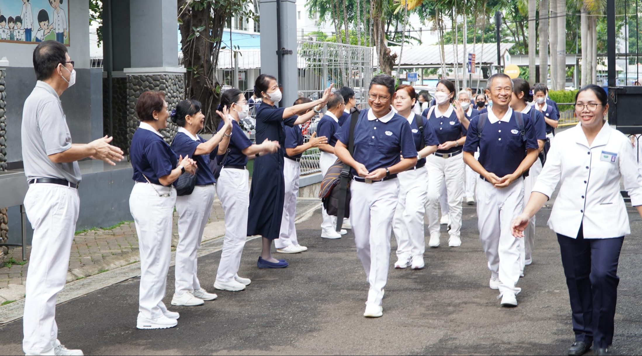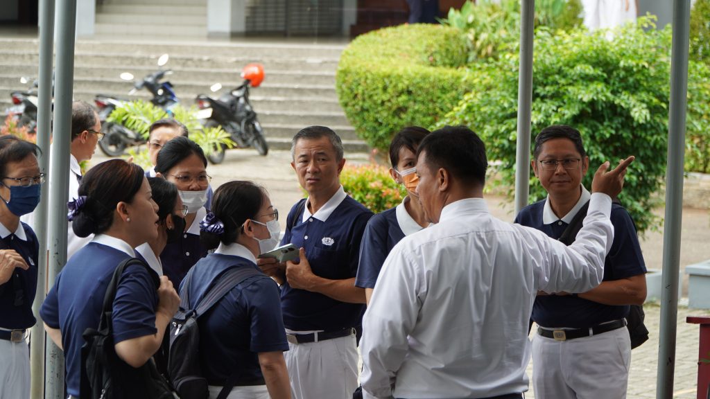 Disini para guru dan staff berserta relawan sedang menyambut para relawan Tzu Chi Malaysia.