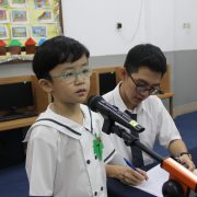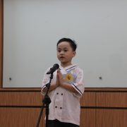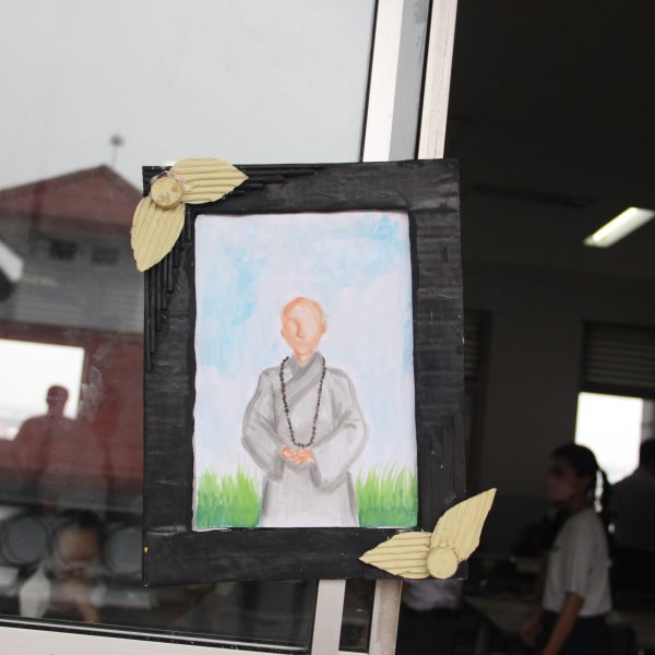 Tampak salah satu Murid Sekolah sedang menjelaskan makna arti dari pembuatan hiasan manding dengan tema yang telah di tentukan adalah 弘法利生信願行。蔬食共善護大地 Hóng fǎ lì shēng xìn yuàn xíng. Shū shí gòng shàn hù dà dì Menyebarkan Dharma dan Membawa Manfaat bagi Semua Mahkluk dengan keyakinan, ikrar dan praktik; Menerapkan Pola Makan Nabati dan Bersama-sama Berbuat Kebajikan demi Melindungi Bumi. Tema tersebut merupakan tema yang di tentukan oleh Master Cheng Yen. Tujuan dari tema tersebut adalah 1. Untuk memperkenalkan keanak-anak dalam tema tersebut tidaklah di pelajari juga mendalami makna setiap kata dalam tema tersebut.