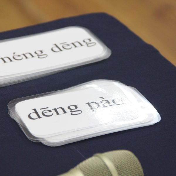 Foto 1 : Anak sedang tebak bahasa mandarin dalam bentuk pin yin maupun indonesia