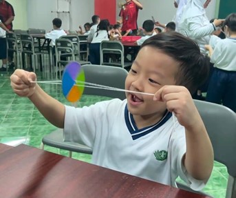 Kegiatan selama kunjungan dirancang dengan cermat dan juga mempertimbangkan keamanan dan kesederhanaan bagi anak-anak TK. Misalnya, dalam kegiatan membuat cakram warna, anak-anak ditunjukkan dengan pembuktian prinsip cahaya, Pelajaran sains awal ini menumbuhkan rasa ingin tahu mereka. Mereka bertanya-tanya, “Mengapa warna- warna yang ada di cakram bisa membentuk warna pelangi?” Pertanyaan ini adalah bukti dasar akan adanya pemikiran ilmiah sejak dini.