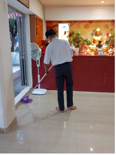 Para siswa terlibat aktif dalam membersihkan area altar, ruang doa, area toilet, hingga halaman Cetiya. Dalam prosesnya, mereka mendapatkan penjelasan mengenai fungsi dan makna setiap bagian dari rumah ibadah tersebut. Dengan memahami hal ini, siswa tidak hanya melakukan kegiatan sosial, tetapi juga mendapatkan pengetahuan baru yang memperkaya wawasan mereka.