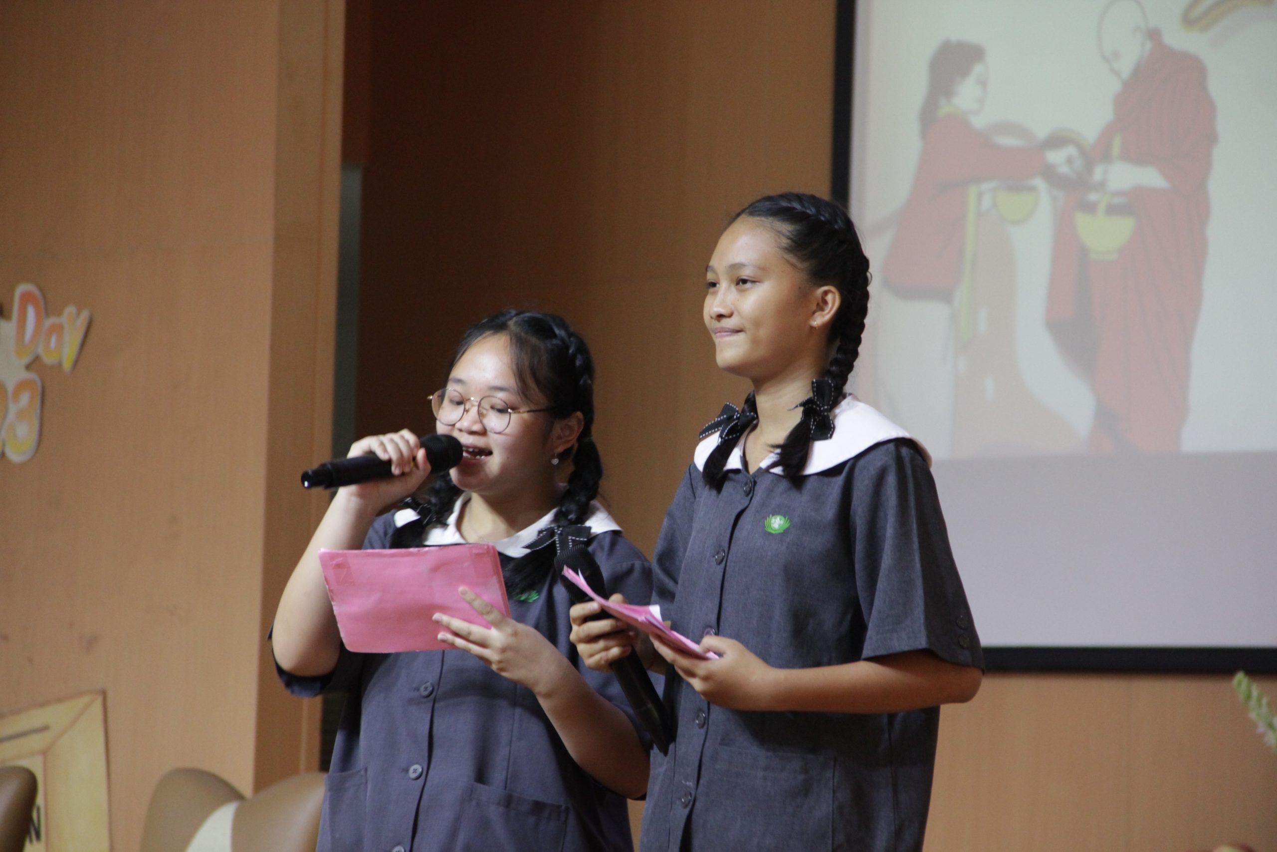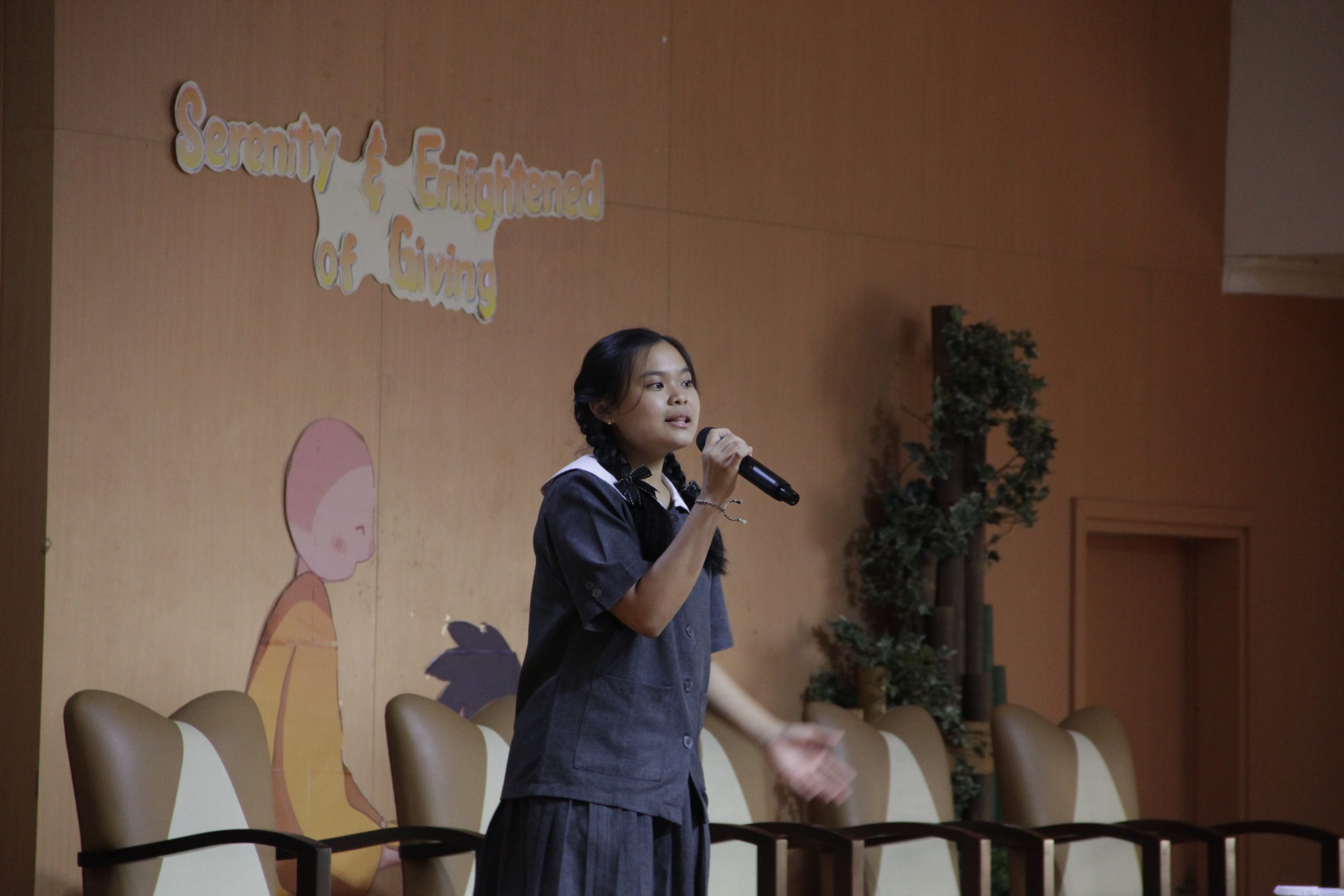 Salah satu murid sma yang bernama Jocelyn menyanyikan lagu buddhis (Buddha)