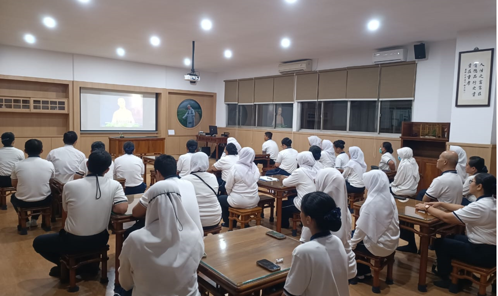 Kegiatan ini dilakukan setiap pagi sebagai bentuk dedikasi untuk mendengarkan ceramah Dharma yang disampaikan oleh Master Cheng Yen, yang bertujuan untuk menyerap ajaran Dharma ke dalam hati dan menerapkannya dalam kehidupan sehari-hari.