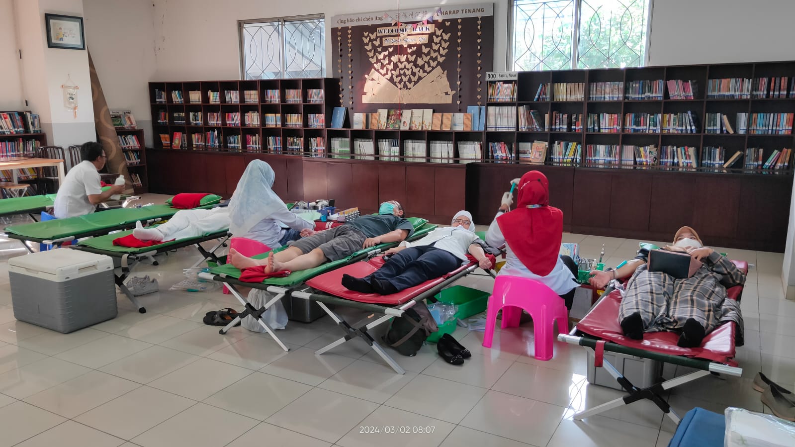 Pada Hari Sabtu, 2 Maret 2024, Sekolah Cinta Kasih Tzu Chi mengadakan Kegiatan Donor darah setiap 4 bulan 1 kali , kegiatan tersebut diakan di Perpustakaan, Gedung B, Lt.1 SCKTC.Donor darah adalah proses dimana seseorang secara sukarela menyumbangkan sebagian dari darahnya untuk keperluan transfusi darah kepada orang lain yang membutuhkan. Donor darah merupakan tindakan amal yang penting karena dapat menyelamatkan nyawa orang yang membutuhkan transfusi darah, seperti pasien yang mengalami kecelakaan, operasi, atau kondisi medis lainnya yang memerlukan tambahan darah.